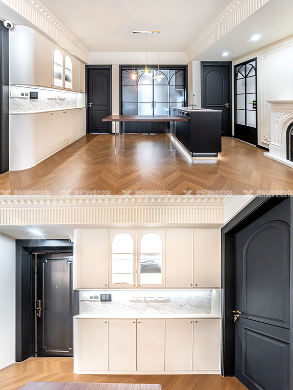 法式復(fù)古風(fēng)的造型柜門溫馨浪漫, 整體空間既不沉悶又更有層次感。